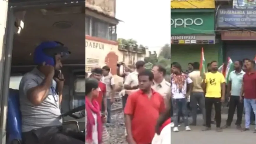 पश्चिम बंगाल: पुलिस की मौजूदगी में, वामपंथी दलों के यूनियन सदस्यों ने जादवपुर रेलवे स्टेशन में प्रवेश किया और केंद्र सरकार के खिलाफ अपना विरोध दर्ज कराने के लिए रेलवे ट्रैक को अवरुद्ध कर दिया।