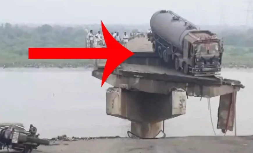 गुजरात में महिसागर नदी पर बना ब्रिज टूटा, कई वाहन गिरे, ट्रक लटका... 2 लोगों की मौत
