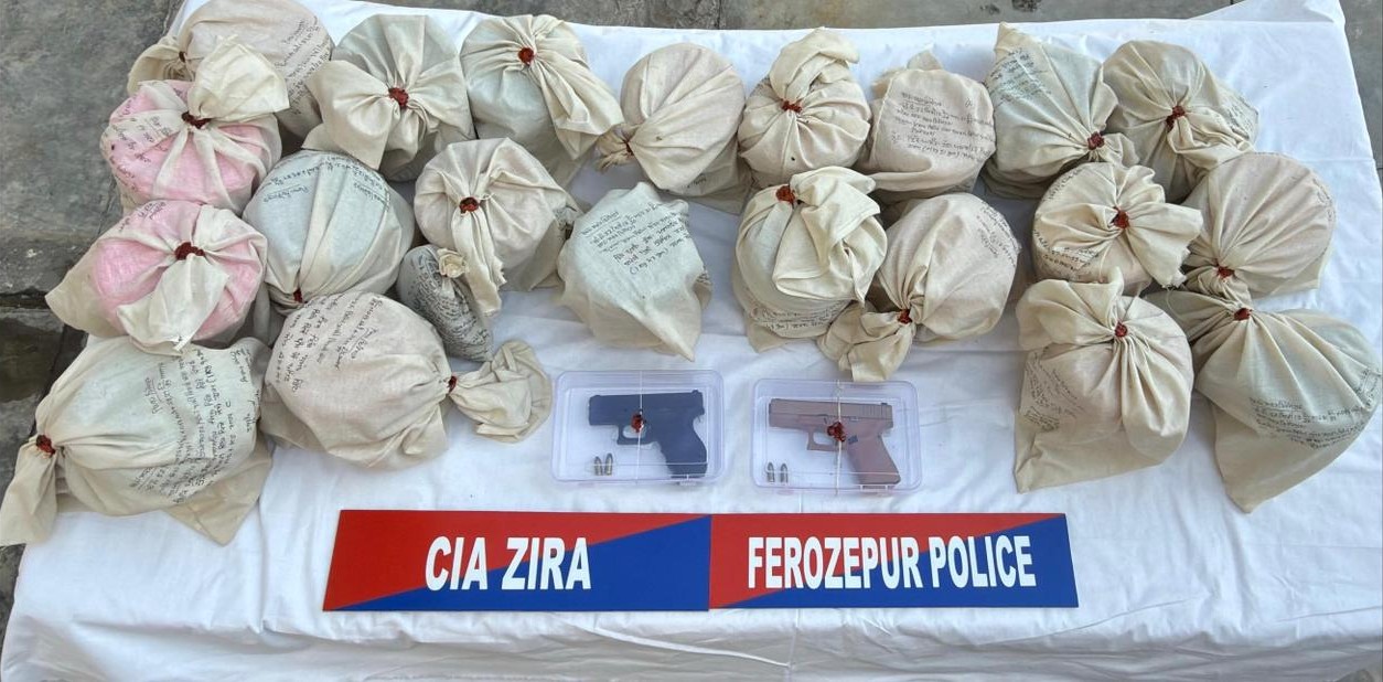 पंजाब में नशा तस्करी और अवैध हथियारों के खिलाफ चलाए जा रहे अभियान के तहत फिरोजपुर पुलिस को बड़ी सफलता मिली है। पुलिस ने एक संगठित नार्को-आर्म्स मॉड्यूल का पर्दाफाश करते हुए चार आरोपियों को गिरफ्तार किया है। कार्रवाई के दौरान 22 किलो 295 ग्राम हेरोइन, दो ग्लॉक पिस्टल, मैगजीन, जिंदा कारतूस, एक कार और 2.05 लाख रुपये की ड्रग मनी बरामद की गई है।