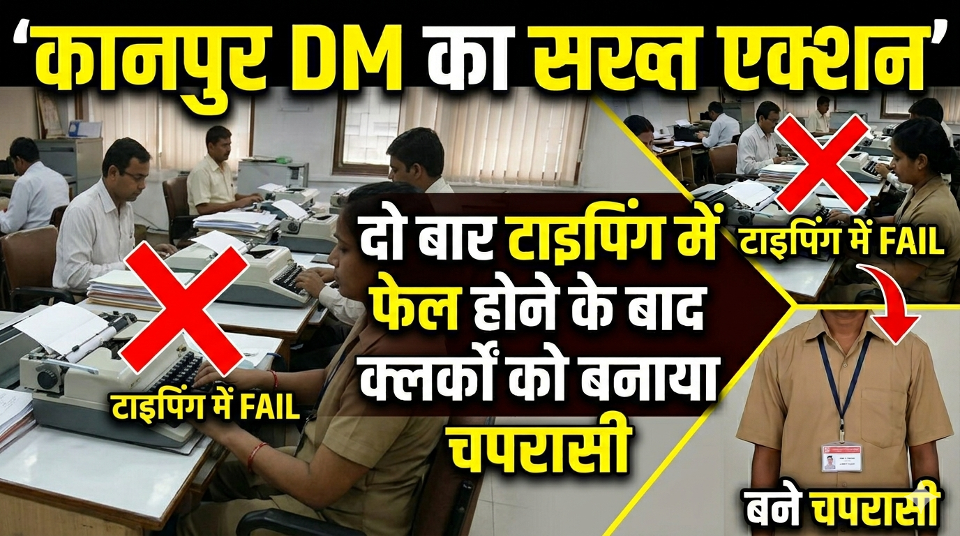 उत्तर प्रदेश के कानपुर कलेक्ट्रेट से एक हैरान करने वाला मामला सामने आया है, जहां टाइपिंग परीक्षा में लगातार असफल रहने पर तीन क्लर्कों को पद से हटाकर चपरासी बना दिया है। इस कार्रवाई के बाद प्रशासनिक डिपार्टमेंट में हलचल मच गई है और यह मामला चर्चा का विषय बन गया है।