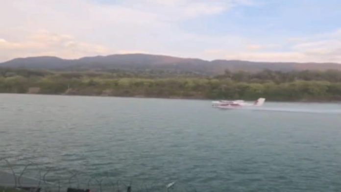 #WATCH | Uttarakhand: A historic moment was witnessed today at the Ganga Barrage when a private company successfully conducted a trial landing of a seaplane. This initiative is being seen as a significant step toward taking air connectivity and tourism in the state to new… pic.twitter.com/tKMCsjKwXu