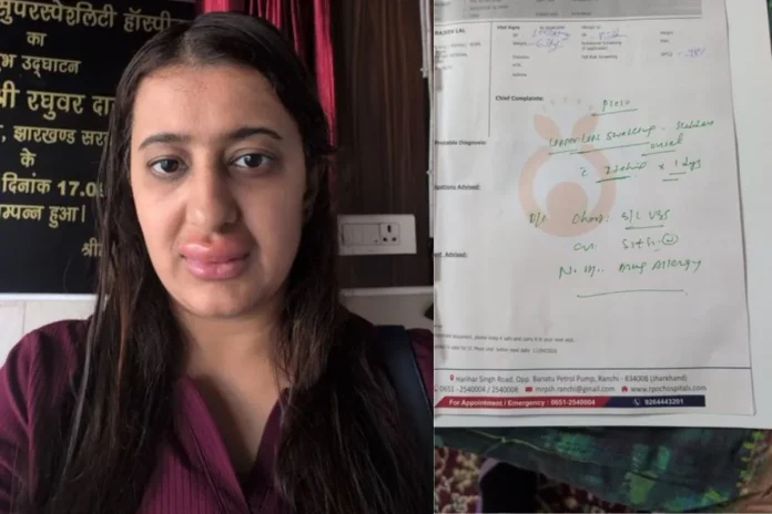 प्रीमियम ट्रेन वंदे भारत एक्सप्रेस में खाने की गुणवत्ता को लेकर एक गंभीर मामला सामने आया है। रांची की रहने वाली आयुषी सिंह ने आरोप लगाया है कि ट्रेन में परोसा गया खाना खाने के बाद उन्हें तेज एलर्जी हो गई, जिससे उनके होंठ सूज गए। साथ ही उनके दो साल के बच्चे को दस्त की शिकायत हो गई।